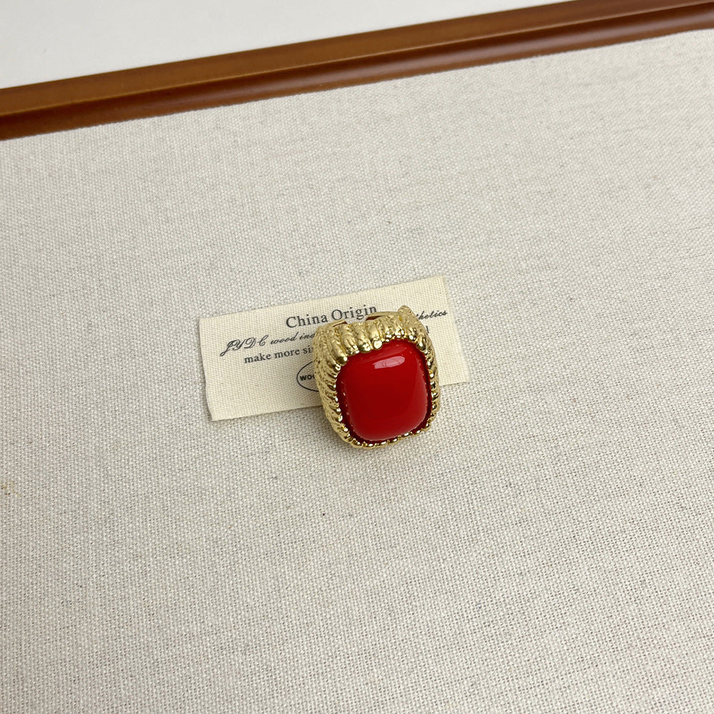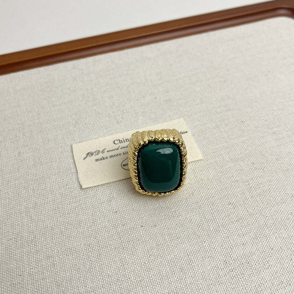Large square resin open ring for women European and American light luxury niche high-end index finger ring retro design ring
